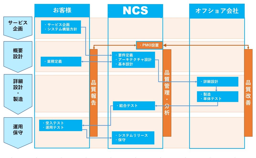 オフショア開発のメリットは、大きなコスト削減を見込めると言われていますが、弊社では、色んなIT技術に優れた開発力ある開発チーム部隊として提案し、尚且つ低コストでシステム実装が可能とのことである。弊社のオフショア開発は、長年のオフショア開発実績ある中国上海/南通の会社と連携し、実施しています。オフショア開発は、開発の低コストがメリットと良く言われていますが、弊社では、優れた開発力ある開発チーム体制を提案し、尚且つ低コストでシステムを実現するという利点があります。つまり、日本メーカーに相当するソフトウェア開発の品質を前提に、安全なシステム構築を実現する一方で、開発コストが日本の半分以下になります。